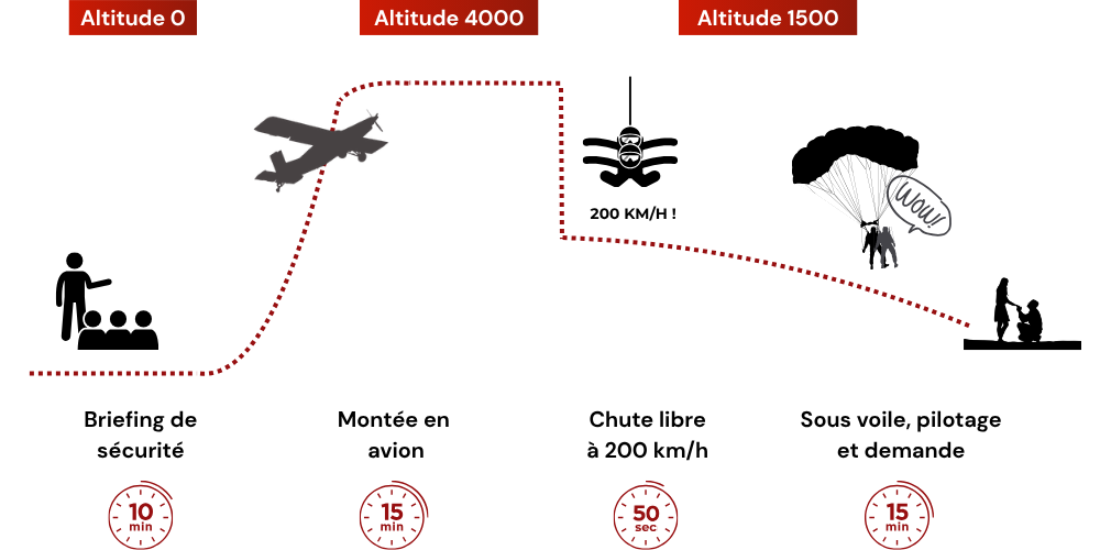 - La vidéo extérieure est réalisée par un vidéoman qui saute à vos côtés pour capturer l’ensemble de votre chute libre.